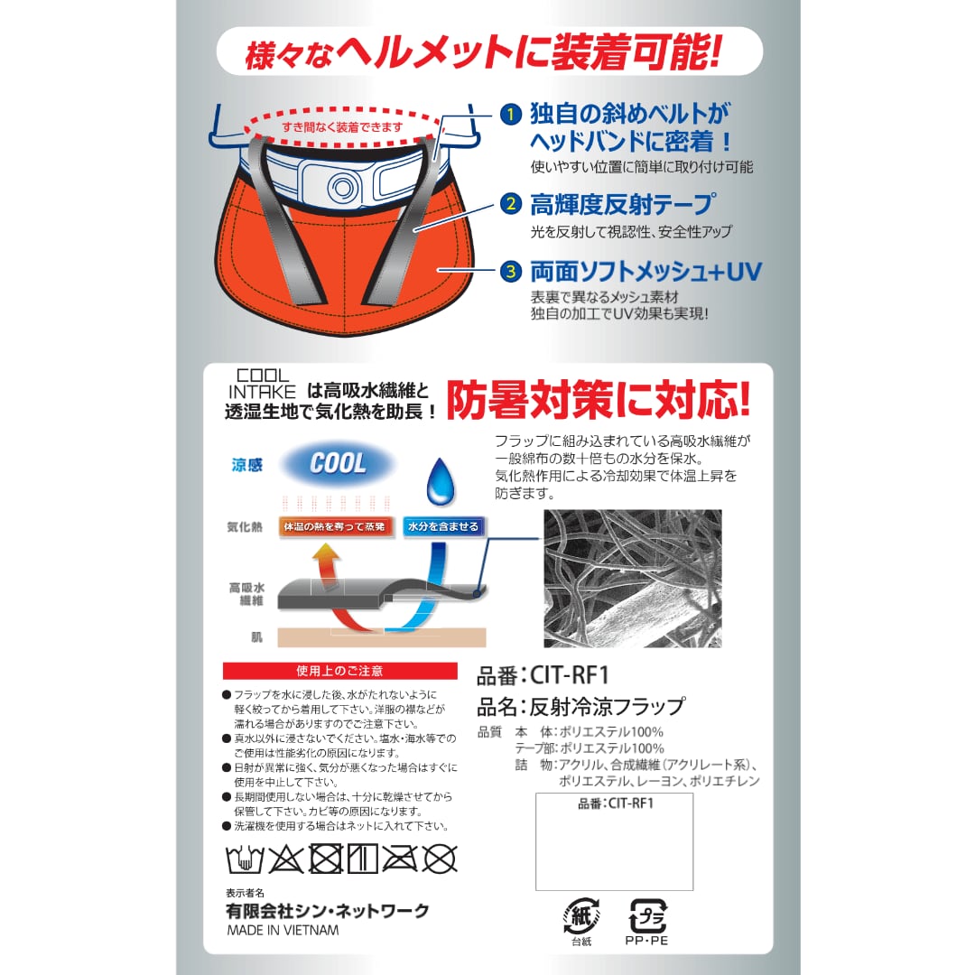 高輝度反射冷涼フラップ 日除けたれ ヘルメット・帽子に装着可能 CIT-RF1